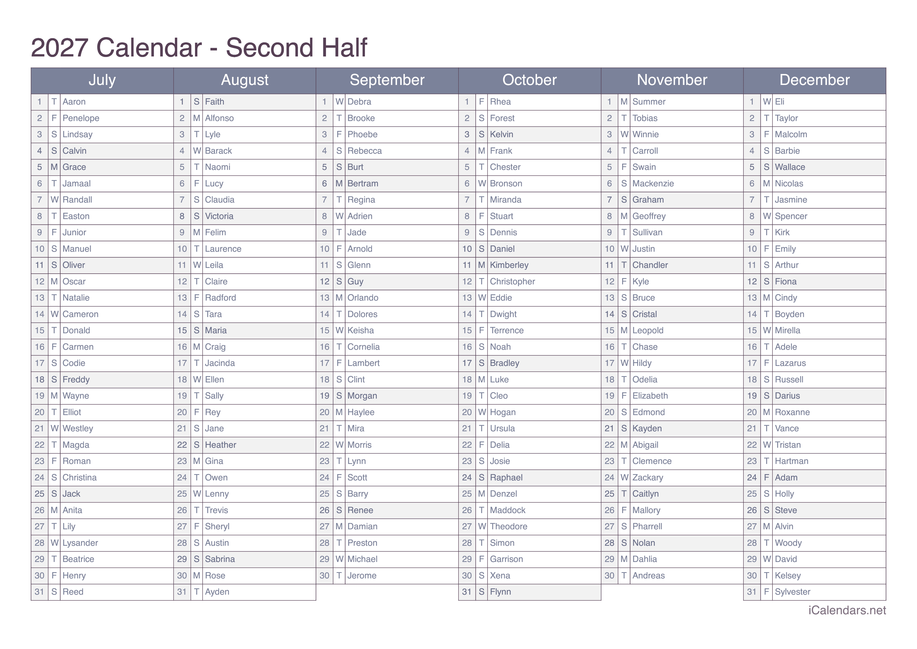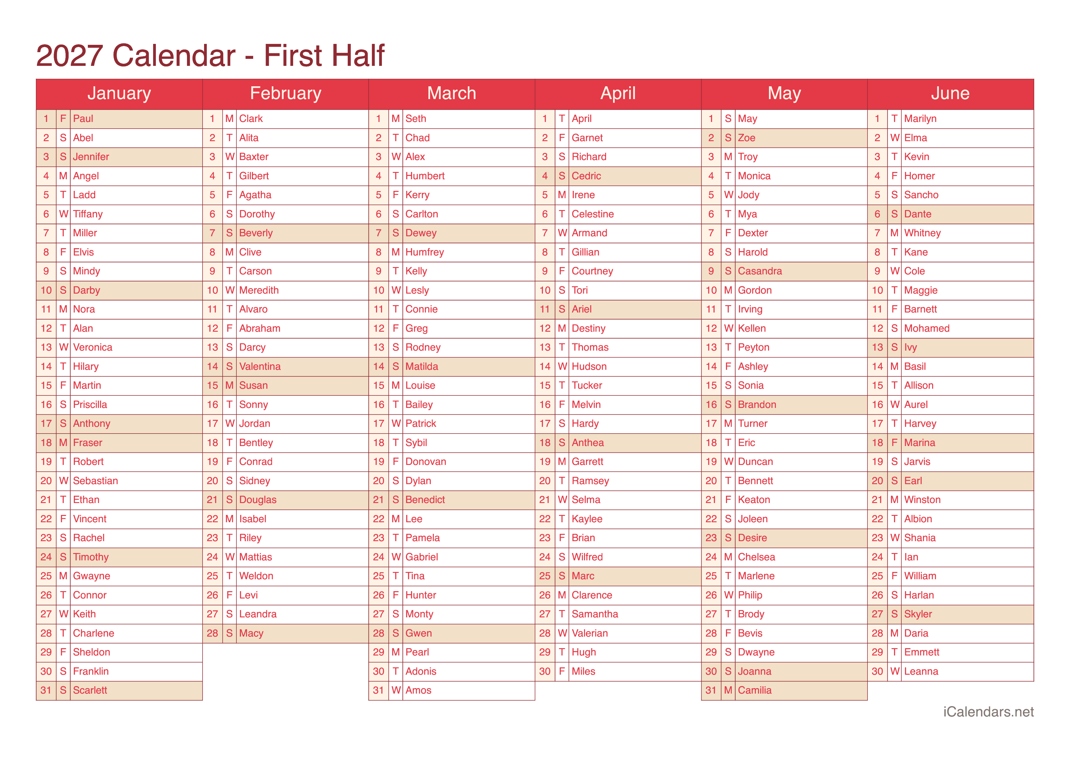 We have 3 half year calendars, one blank, one with week numbers and one with name days already filled.
