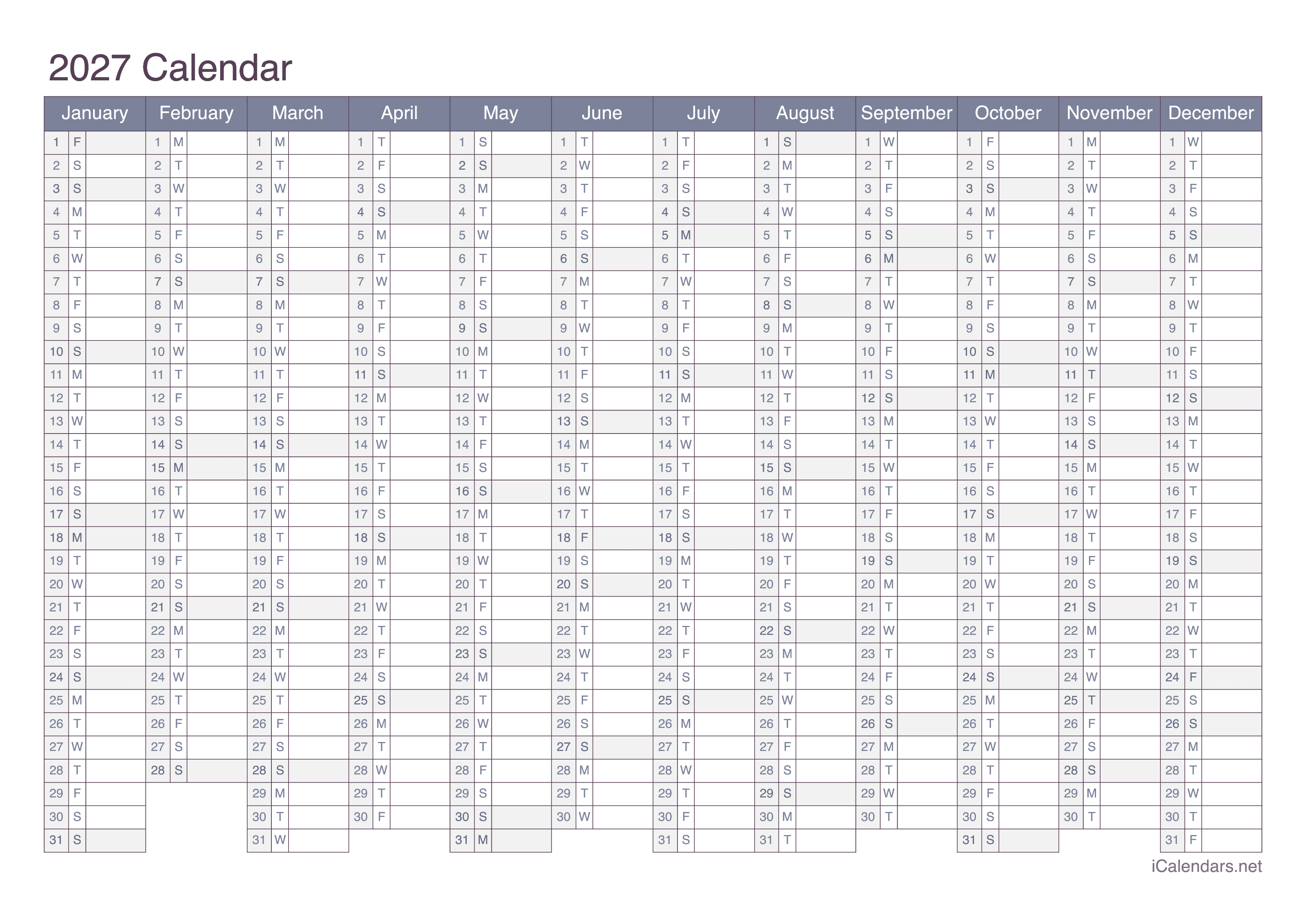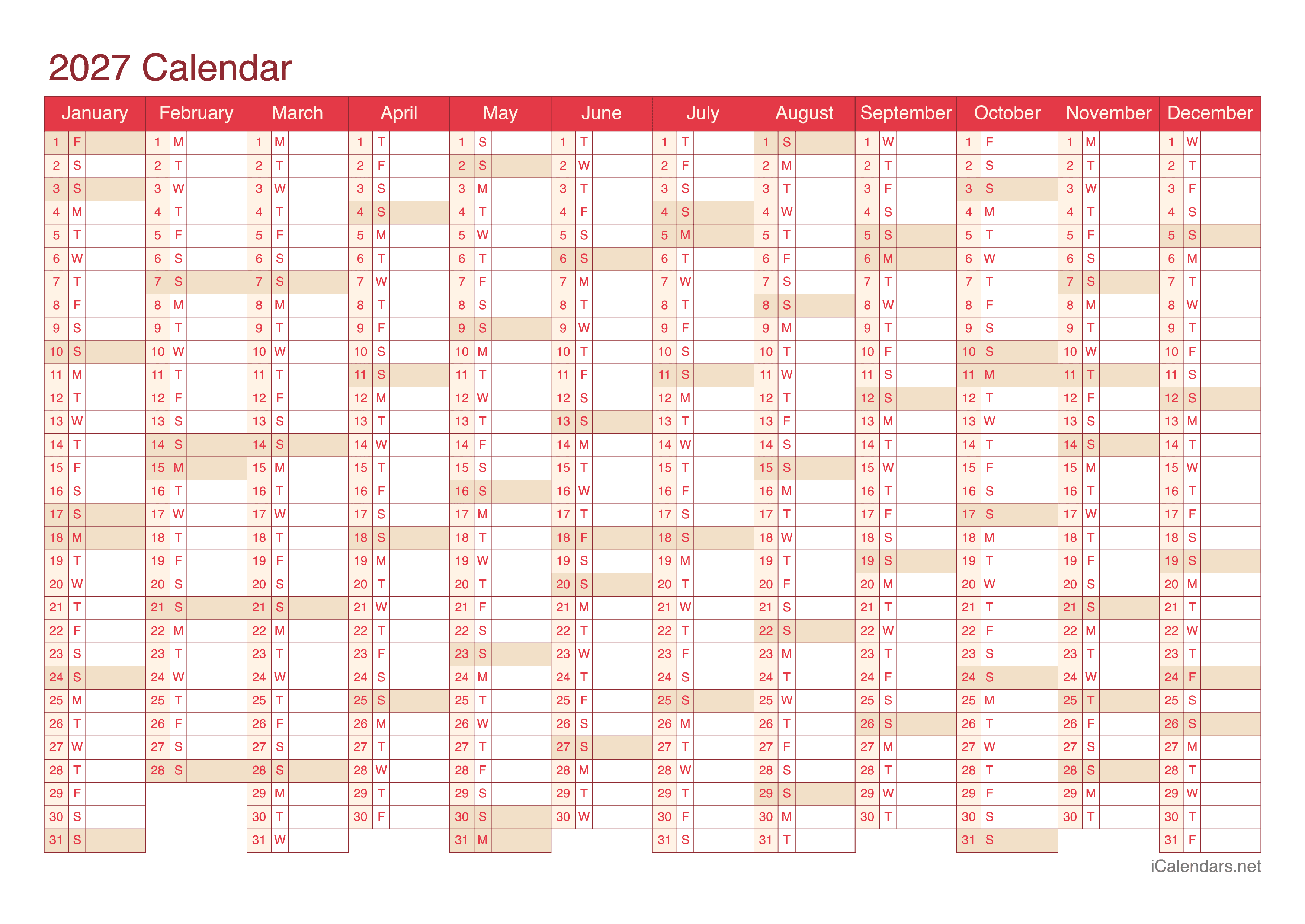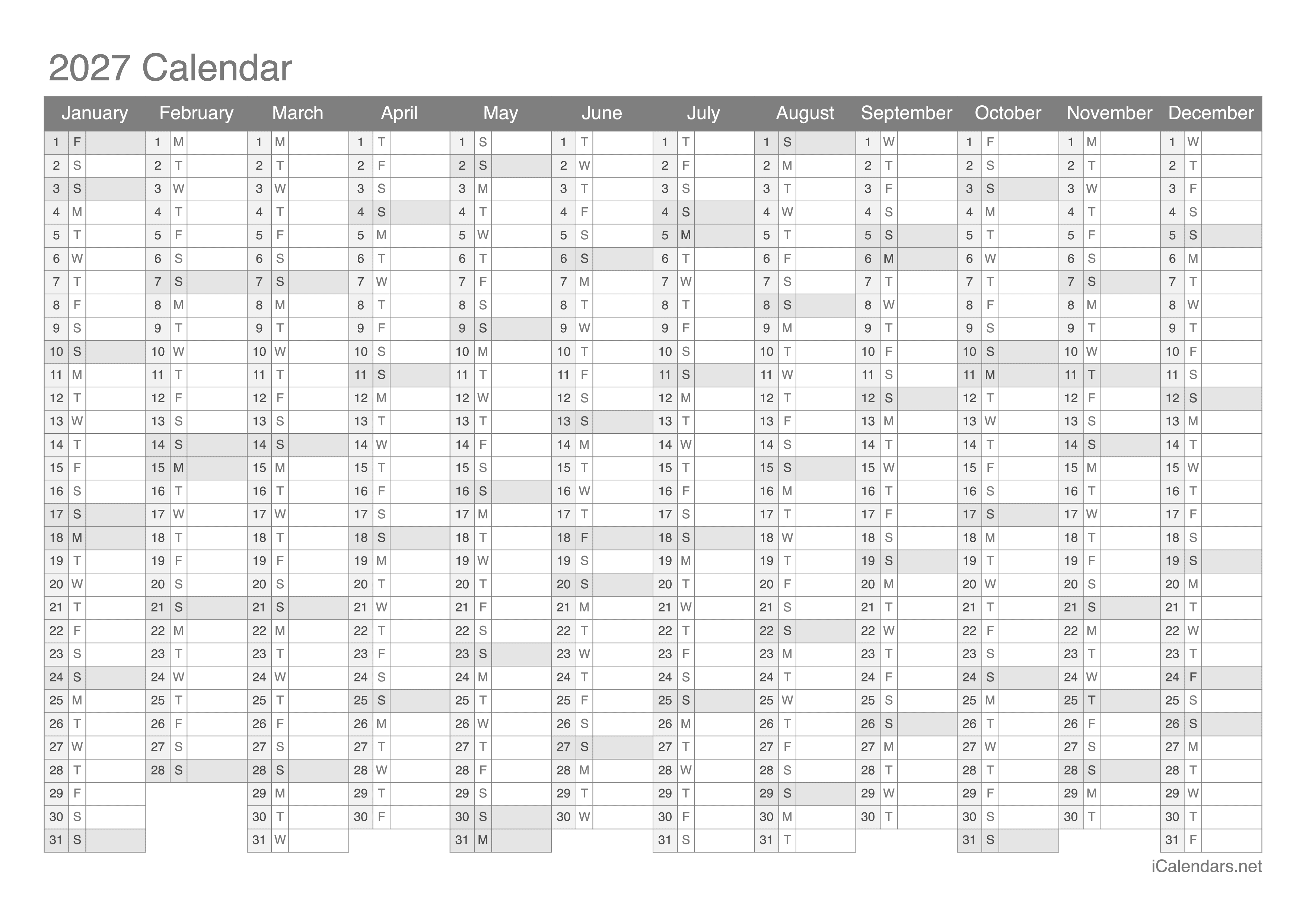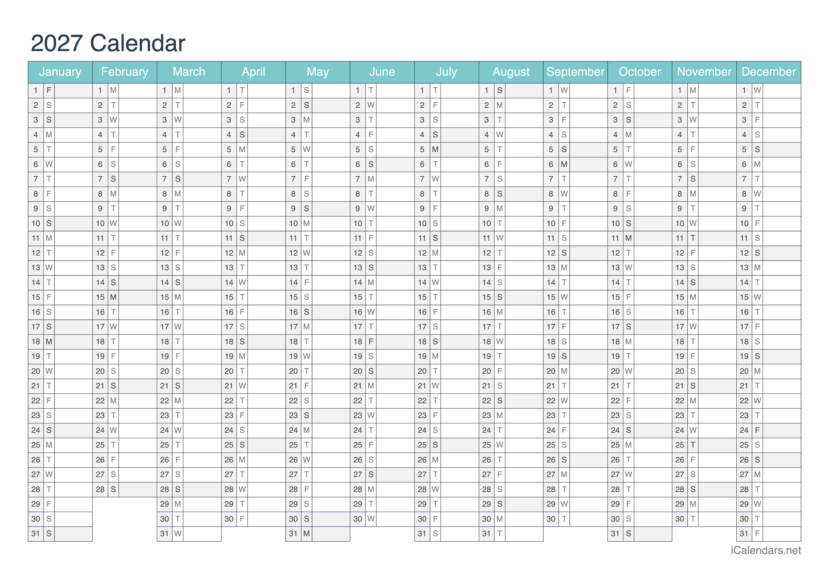 Our calendars are free to be used and republished for personal use. This calendar allows you to print the full year on one page, the template is available in image, PDF and Excel formats.